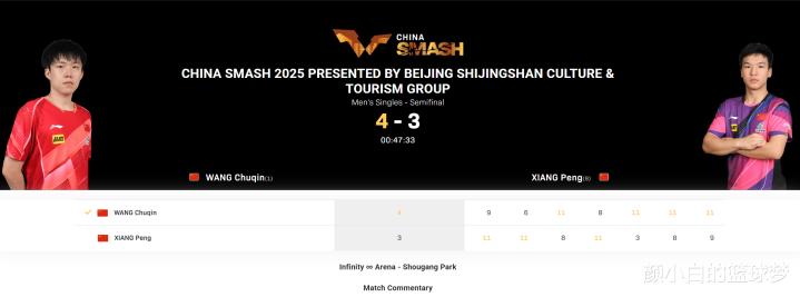 本次北京大满贯打入男单半决赛已经是仁川后最佳成绩,WTT太原常规赛的男单半决赛含金量肯定远不如WTT大满贯的男单半决赛,向鹏本站算是一扫阴霾了。