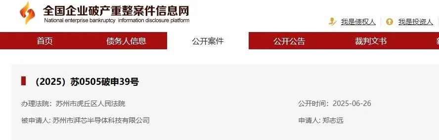 ▶▶苏州湃芯:苏州湃芯半导体科技有限公司成立于 2023 年末,专注于先进芯片制造,然而仅 18 个月后,即 2025 年 6 月,公司被申请进行破产审查。