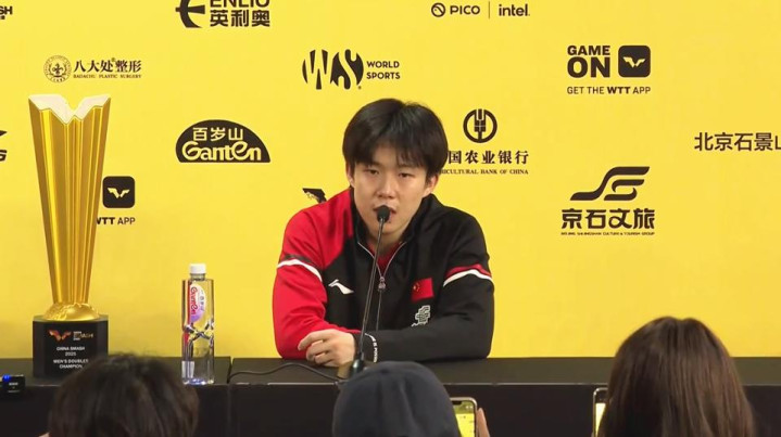 在刚刚结束的WTT中国大满贯赛男双决赛中,王楚钦与林诗栋携手夺冠,但当中国乒协主席王励勤为二人颁发奖杯时,细心的摄影师捕捉到了一个瞬间,王楚钦在王励勤耳边说了一句话,随后成为了大众关注的焦点