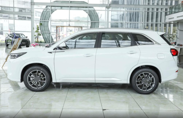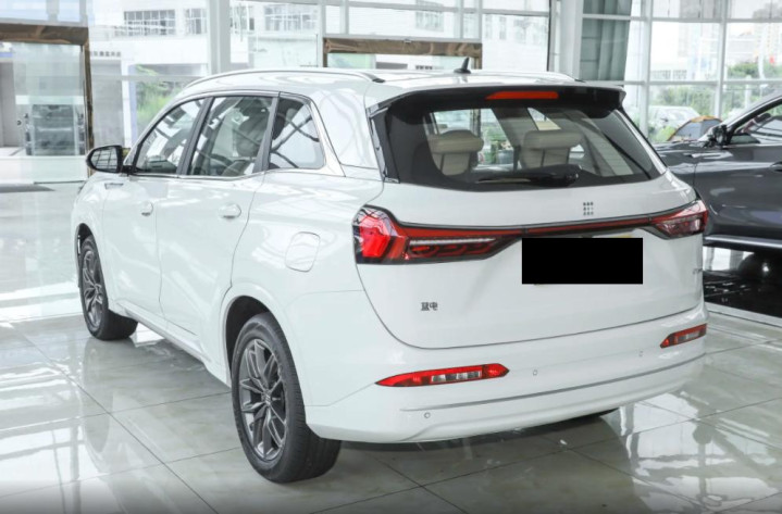 侧身设计上,第三代蓝电E5 PLUS的表现倒是中规中矩,且门把手也是传统的设计,配合流畅的腰线和多辐式的轮毂造型,还有一定的运动感在其中。只是有些可惜的是,第三代蓝电E5 PLUS在车窗的线条方面采用了黑色的窗线设计,结合它的售价来看,显然碍于成本的限制,车辆在精致程度的表现上并不算很出众。