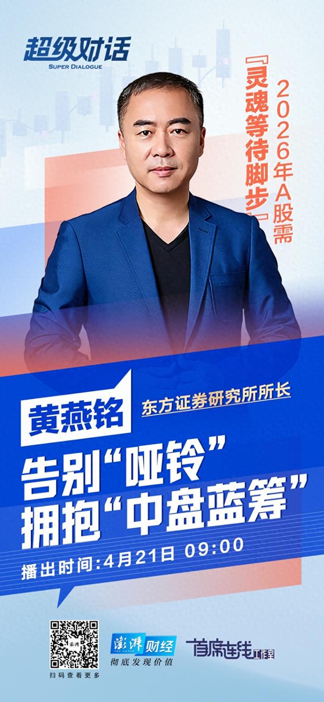 “2026年,A股需‘灵魂等待脚步’,告别‘哑铃’拥抱‘中盘蓝筹’。”4月21日,东方证券研究所所长黄燕铭在做客澎湃新闻《超级对话》节目中如是说。